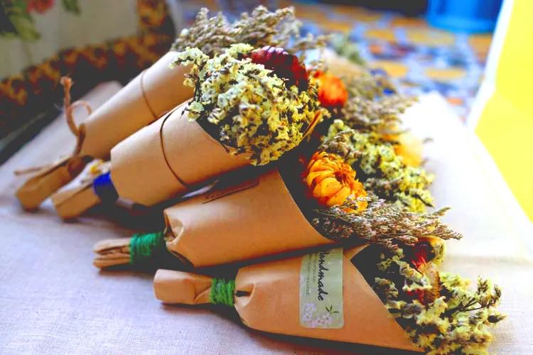 Fresh flowers, after instantly dehydrated by using desiccant, become dried flowers which can keep the original colors and shapes of fresh flowers for a long time. The most common dried flowers include babysbreath, lavender, forget me not and daisy.